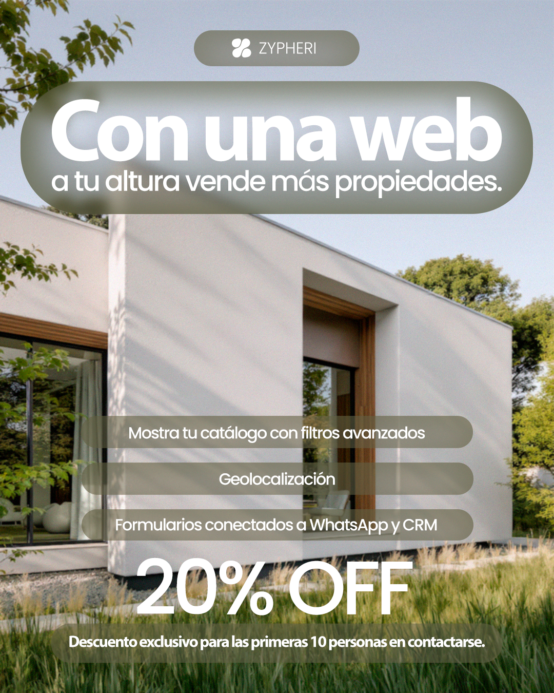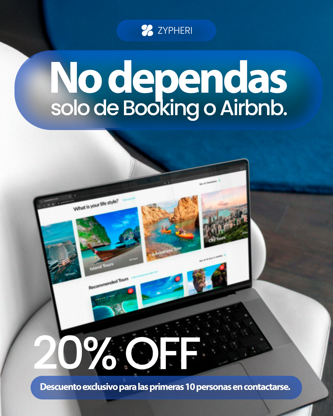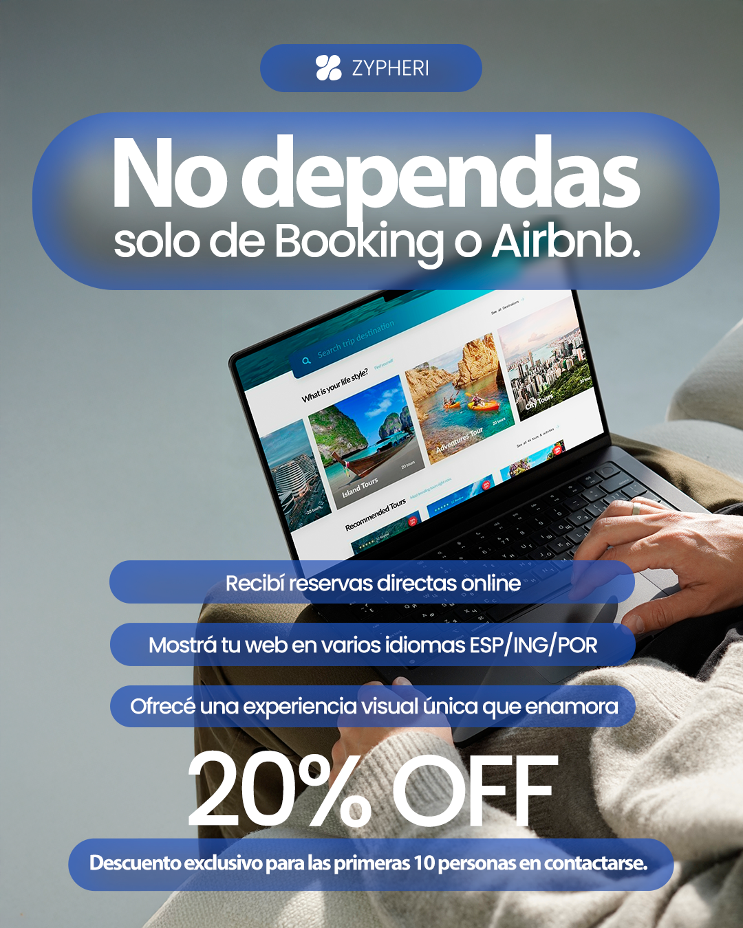 Campaña realizada en META Ads verano 2025/2026 para la marca Zypheri. Pensado para los nichos de tursimo, inmobiliarias, clinicas sumado a un anuncio general.
